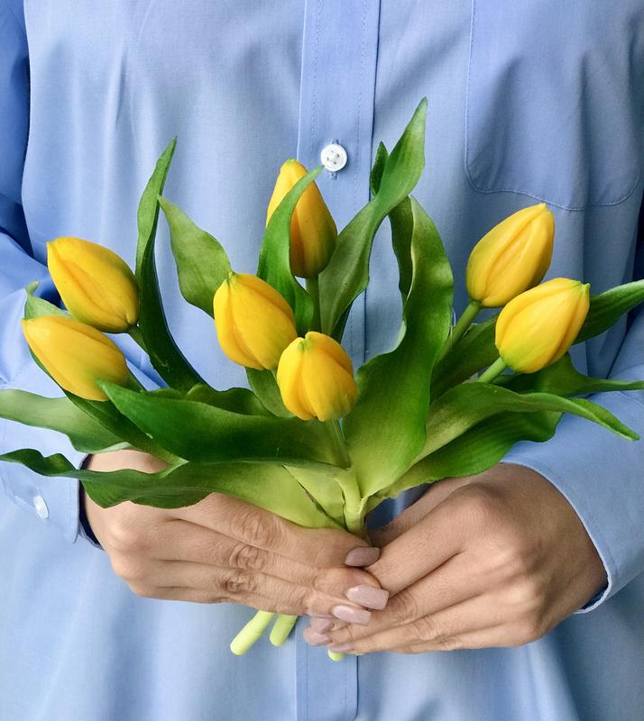 Искусственные тюльпаны латексные букет 7 закрытых бутонов жёлтые real touch