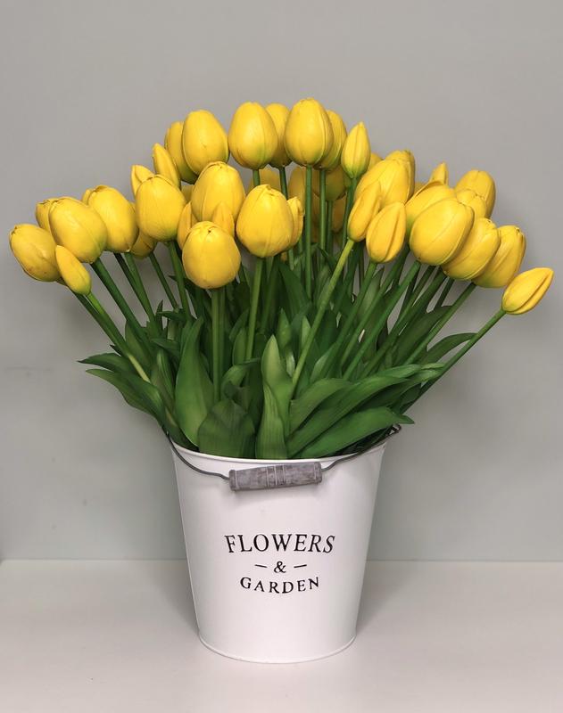 Букет штучних латексних тюльпанів із закритими бутонами - це стильне рішення для весняного декору або елегантний подарунок, який завжди залишається свіжим. Завдяки реалістичному вигляду, приємній текстурі та технології Real Touch, ці квіти виглядають і відчуваються майже як справжні. Букет складається з 5 жовтих тюльпанів із витонченими закритими бутонами: - 3 більші бутони діаметром 4 см - 2 менші бутони діаметром 2,5 см - Загальна висота букета - 41 см Ці тюльпани виготовлені з високоякісного латексу, що робить їх максимально реалістичними на вигляд і дотик. Гнучкі стебла дозволяють змінювати форму букета, адаптуючи його під будь-яку вазу чи квіткову композицію. Букет можна ставити у вазу з водою - і квіти виглядатимуть, як щойно зрізані! Тюльпани чудово підійдуть для оформлення інтер'єру дому, офісу, ресторану, фотозони, весільного декору та святкових подій. Вони гармонійно виглядають як самостійна композиція, так і в поєднанні з іншими кольорами. Для створення більш ефектної квіткової композиції можна поєднати кілька таких букетів одного чи різних відтінків. Цей букет стане чудовим подарунком на 8 березня, День Святого Валентина, День народження або річницю, даруючи весняний настрій та відчуття ніжності.