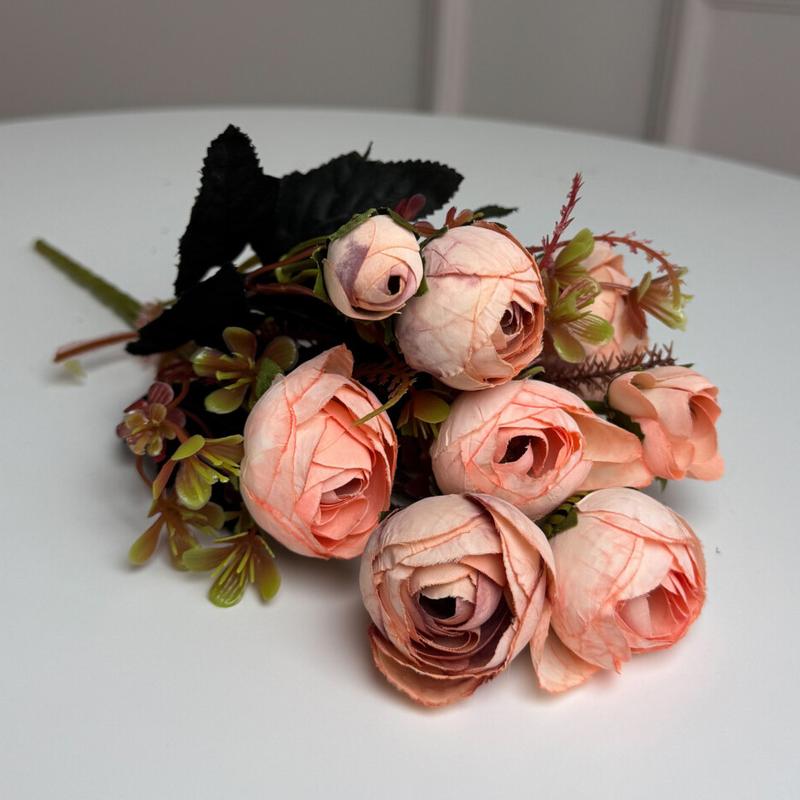 🏆 Букет Ранункулюсів штучний, 30 см, 5 стебел, 8 квіток/мікс (2 букети в уп.). Колір: персиковий RV-31