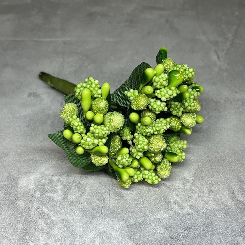 Тычинка для рукоделия (добавка для цветов), цвет- салатовый, букет (12 веточек), салатовій
