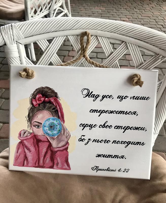 Картина виконана на дериві(фанера), малюнок і напис акриловою фарбою! Якісно та з любов‘ю! Розмір 35х45 см