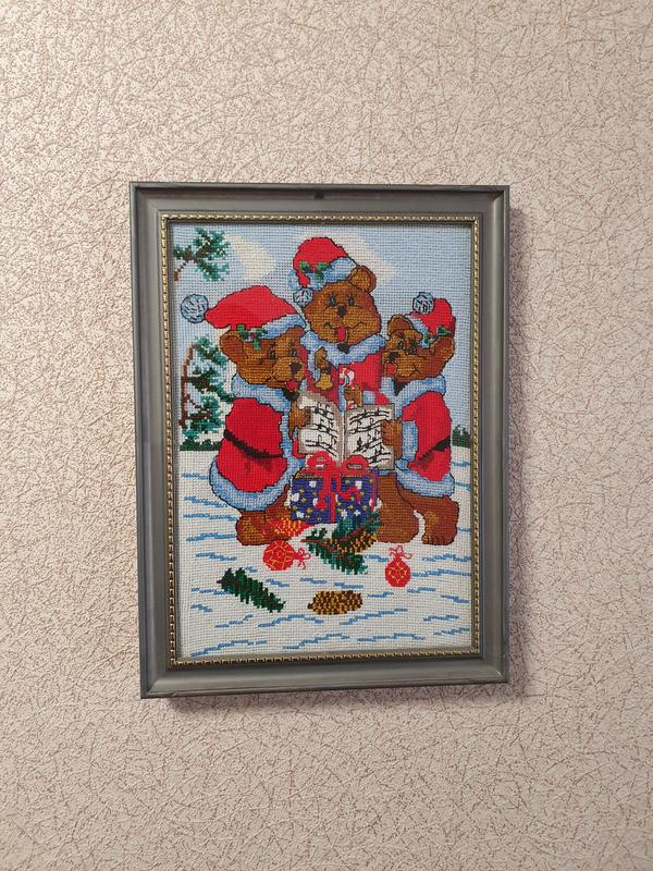 Вишивка хрестиком ручної роботи "Медведики" Розміри з урахуванням рамки: 33 см висота, 25 см ширина Чудово підійде як подарунок