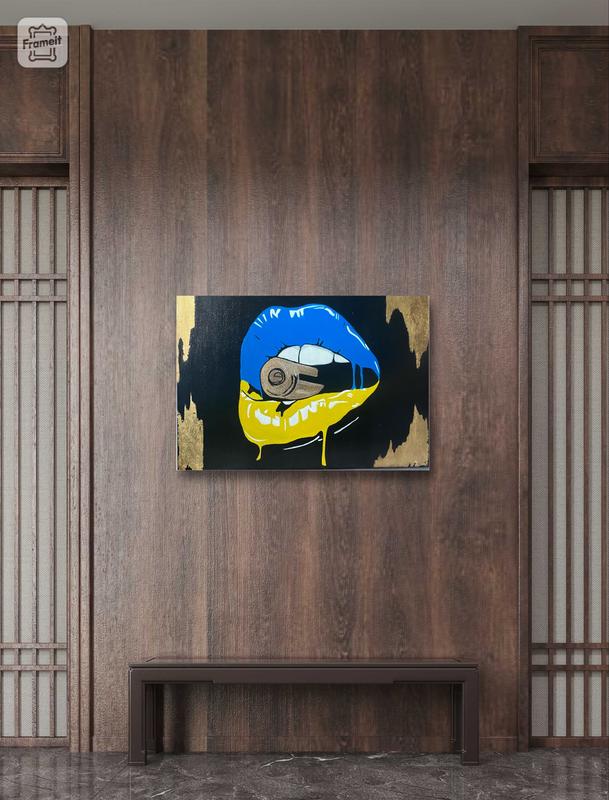 Картина "Символ боротьби" є відображенням сміливості, рішучості та національного духу українського народу. На чорному тлі художник зобразив виразний рот, який тримає в зубах кулю, що є відсиланням до історії боротьби за незалежність та свободу, а також символом опору та сили. Кольори прапора України, використані у зображенні, підкреслюють патріотичний дух та національну гордість. Ця картина нагадує нам про наполегливість і силу українського народу та його непохитну боротьбу за свої ідеали. «Символ боротьби» є джерелом натхнення та піднесення, дозволяючи кожному глядачеві відчути силу та рішучість подолати труднощі та досягти своїх цілей.