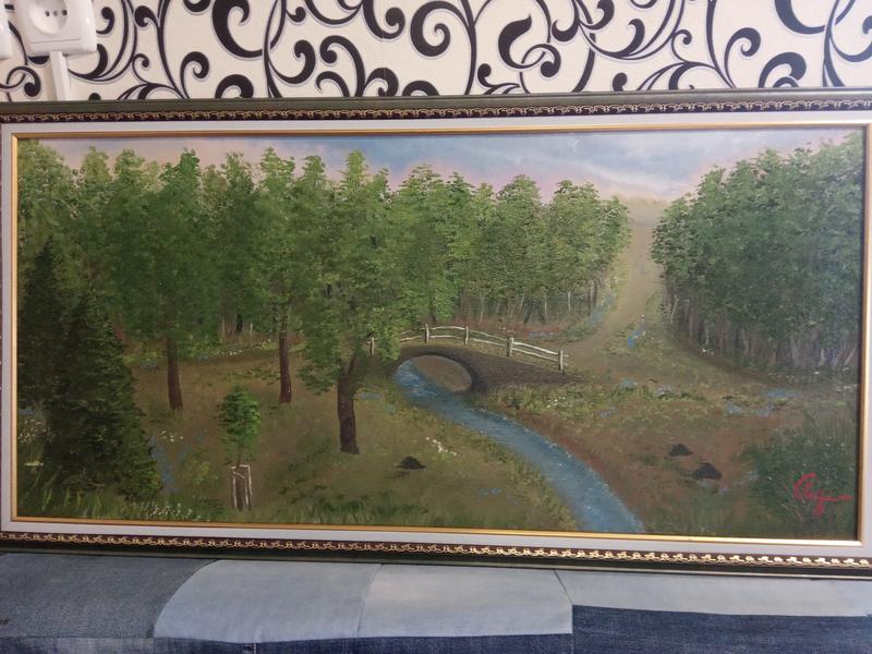 Картина,,лето в лесу,, оригинал,40-60, масло,покрыта лаком, в рамке.
