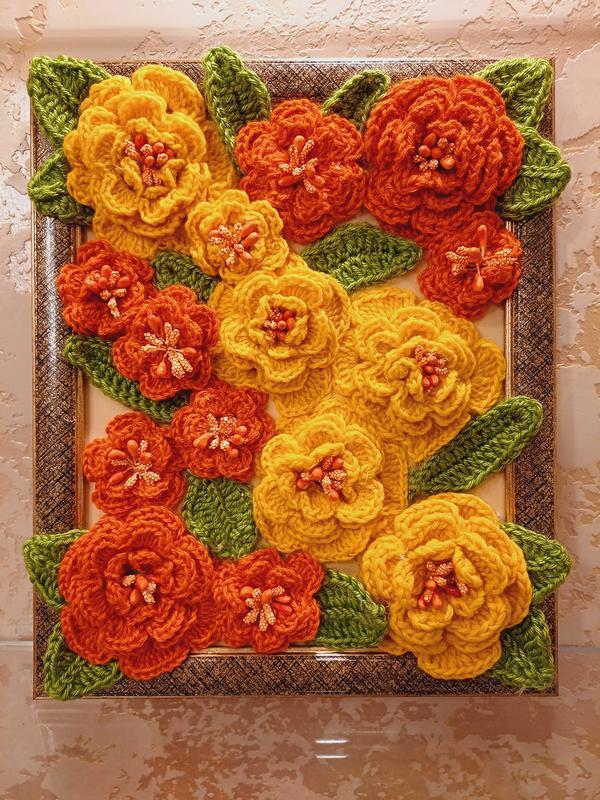 Картина для настрою. Шикарна рамка. Квіти объемні. Оптимістичні кольори. Дуже багато роботи в цій картині. Гарний подарунок, чудова прикраса для оселі. Е два варіанти як вішають на стіну в ширину, або висоту.