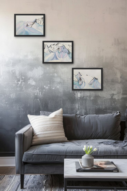 🏔️ Триптих «Гірський спокій» — авторський живопис, 3×А4 «Гірський спокій» — серія з трьох оригінальних картин 2020 року, виконаних гуашшю на акварельному папері формату А4. Композиція створює єдину панораму гірського пейзажу з легкою, повітряною атмосферою. Переважають ніжні сині, фіолетові, білі та рожеві відтінки, що формують відчуття тиші, простору та внутрішньої гармонії. Картини продаються комплектом (триптих). Можна розміщувати разом або окремо. ✨ Характеристики: Назва: «Гірський спокій» Рік створення: 2020 Формат: триптих (3 роботи) Вид: живопис Тип: оригінали, ручна робота Техніка: гуаш Основа: акварельний папір Розмір кожної картини: А4 (21 × 29,7 см) Орієнтація: горизонтальна Оформлення: без рамки Стан: відмінний 🏡 Ідеально для: спальні або вітальні інтер’єру в стилі мінімалізм, сканди, сучасна класика оформлення над диваном або ліжком подарунка, який створює атмосферу спокою