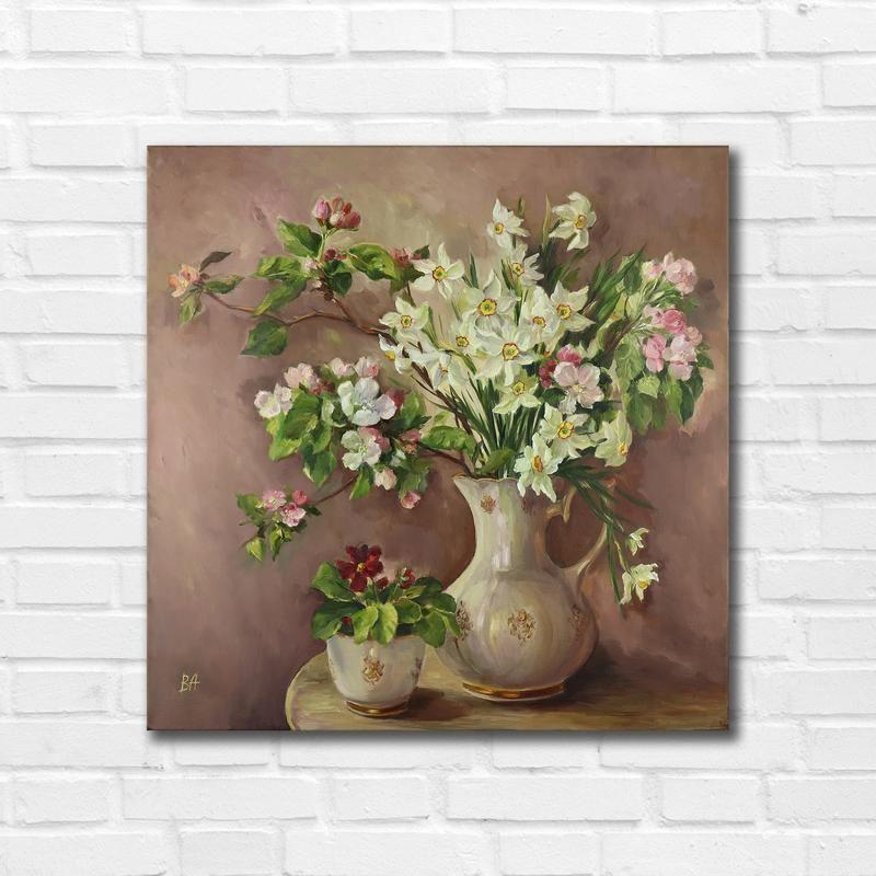Картина олією "весняна різноманітність" 50×50 см, полотно на підрамнику, олія