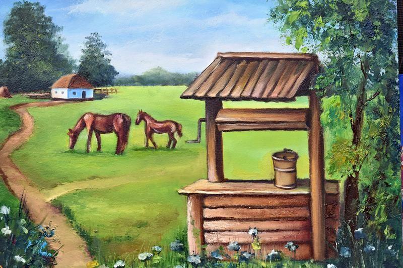 Колодязь, пейзаж, оргаліт, 30х40см