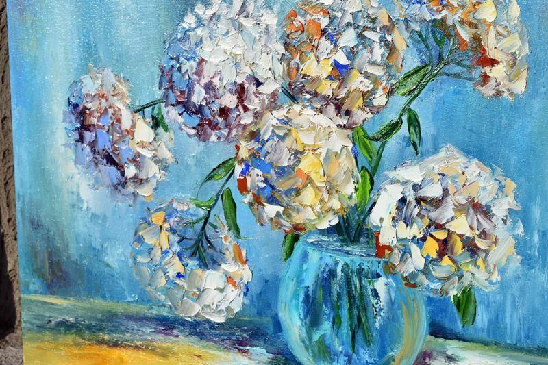 Картина белые цветы , оргалит, размер 35х45 см. Живопись выполненна мастихином крупными мазками. На яркий слой нанесен лак. Такая картина станет прекрасным дополнением интерьера. Материалы: Масляные краски. Оргалит размером 35х45см. Продается без оформления в раму. Сделаю дополнительные фото по желанию покупателя Отправлю любым перевозчиком по Украине Картины от начала до конца создаются мною вручную Рекомендации по уходу: Картину протирать от пыли сухой тряпочкой. Живописную поверхность обметают в одном направлении, нажим на поверхность картины должен быть самым минимальным. Не вешайте картину под прямыми солнечными лучами