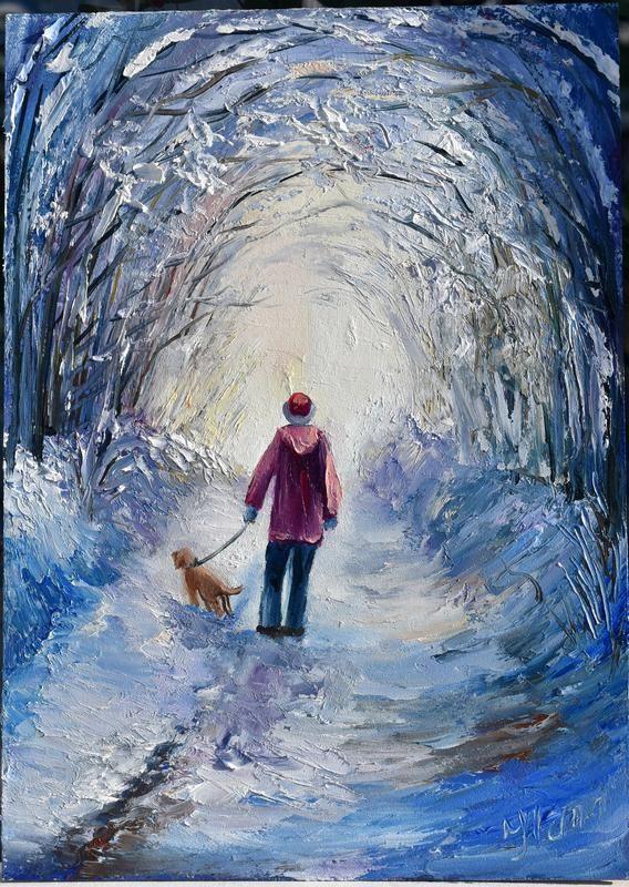 Зимова прогулянка, пейзаж, оргаліт, розмір 25х35