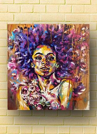 65*75см. Картина олійними фарбами, яскраві кольори, аутенчність,афроамериканка, афроамериканка. Портретний живопис.