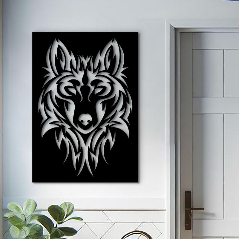 Дерев'яна картина на стіну, декоративне панно з дерева "вовк - вирізка", мінімалістичний с...