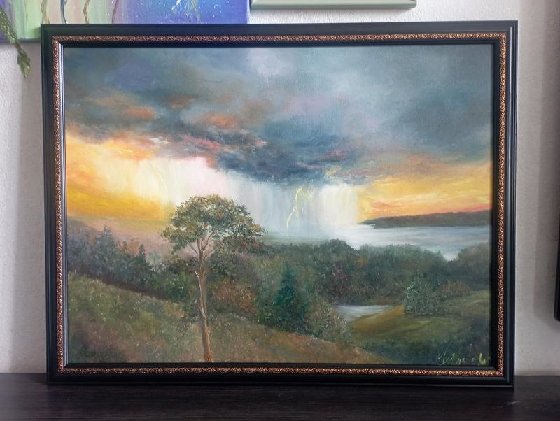 Полотно оформлено в багет, 45х60 - размер без багета, масло, оригинал,