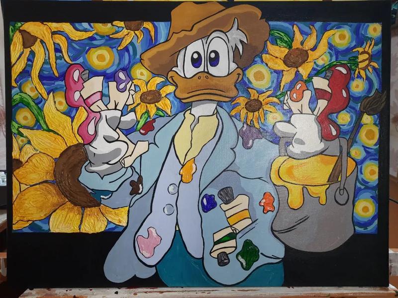 Картина : "Дональд Дак: Магия кисти"🖼 Полотно: 45×60 см Материал: Акрил, текстурная паста)