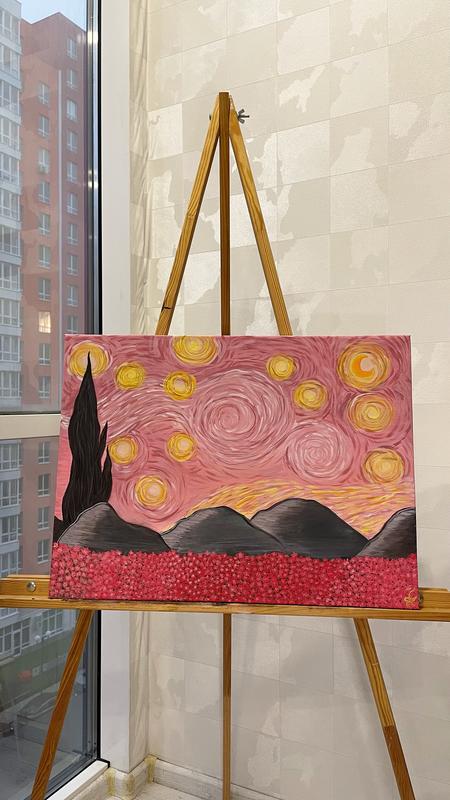 Картина рожева в стилі «Зоряна ніч». Написана акрилом