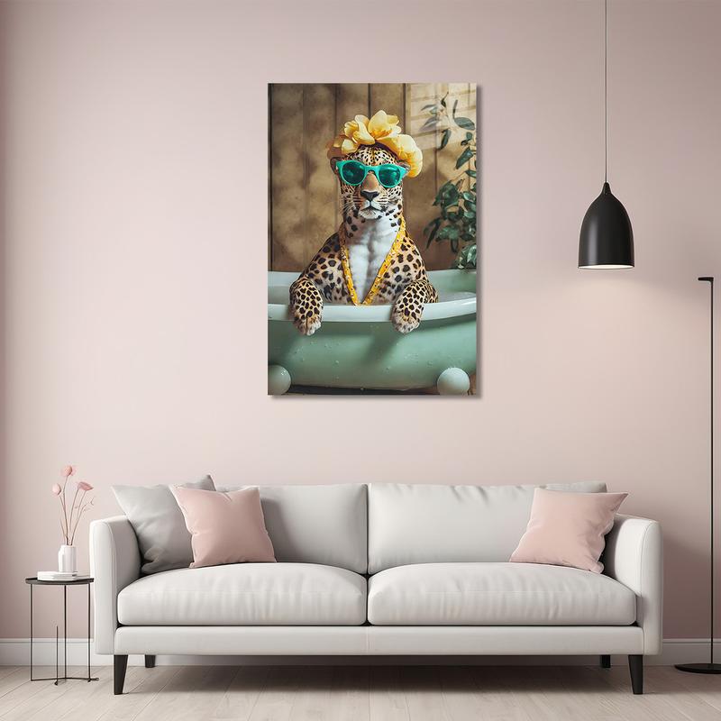 Картина на склі novellaprint "леопард у ванні" 40х60см (451.1)