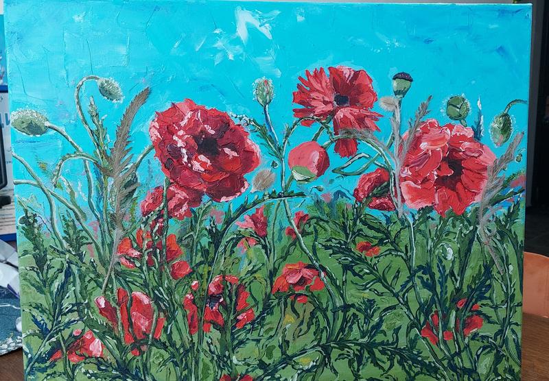 Авторська картина "Маки". Експонувалася на Всеукраїнській виставці. Олійні фарби, полотно 40 на 50 см з додаванням сухоцвітів. Прикрасить Ваш дім, або стане унікальним подарунком!