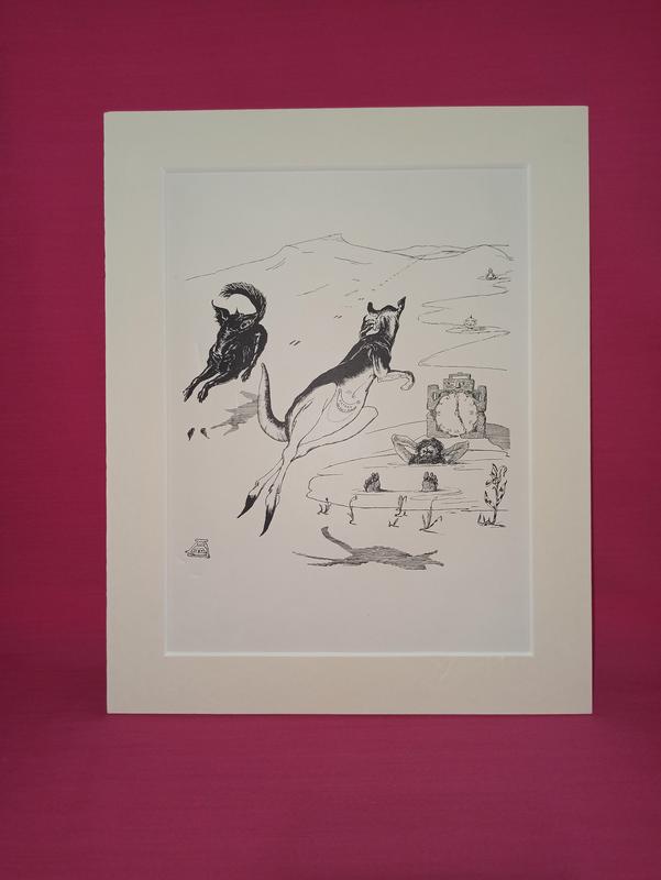Бумажная репродукция графики старый кенгуру в пять часов дня 1992 года Редьярд Киплинг в картонной рамке размер 20,5х25,5 см кое-где есть небольшие вмятины