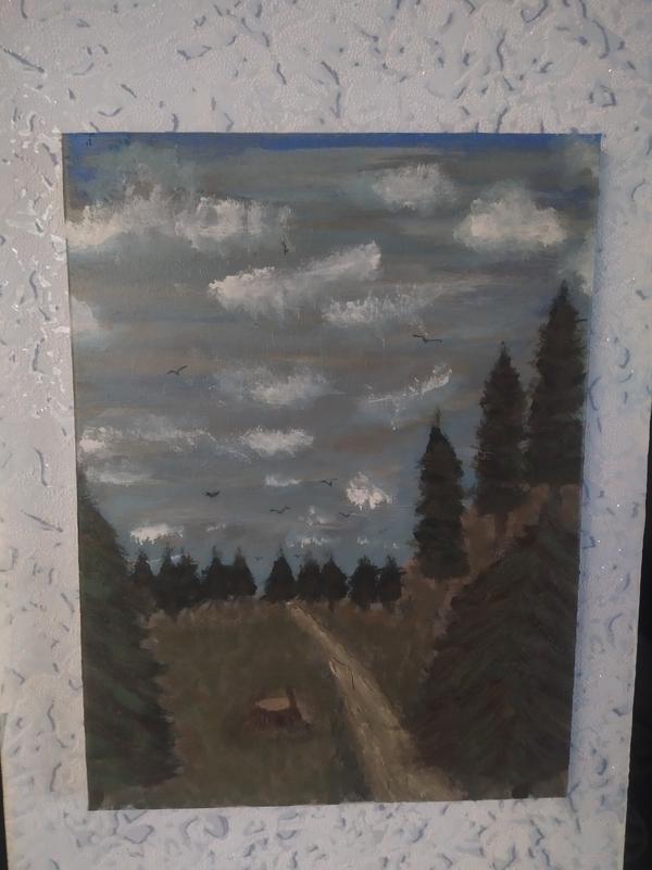 Картина початківця, намальована на холсті акварельними фарбами.