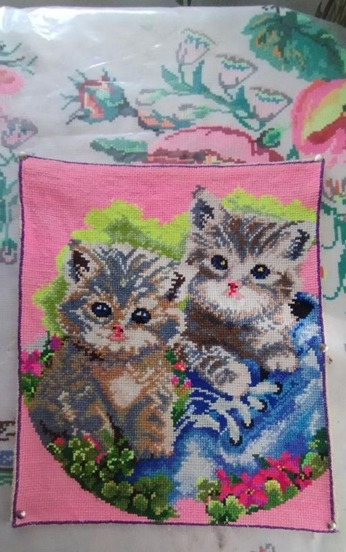Картина з котиками ручної роботи вишиті нитками висота 42 см ширина 36см ціна 2000 +торг
