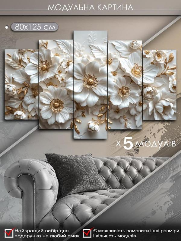 Модульна картина mako "білі елегантні квіти" 80x125 см mk50598