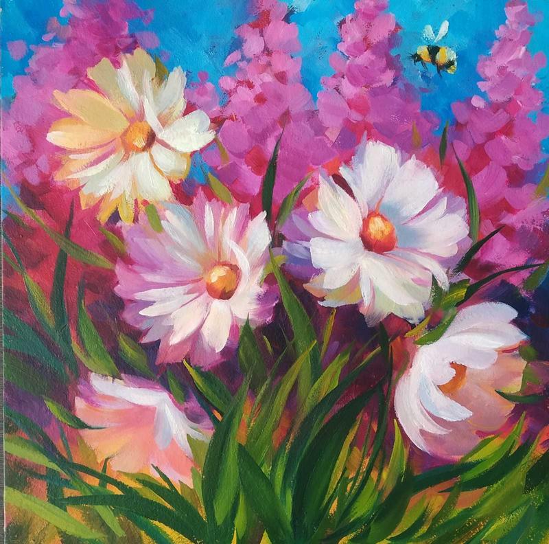 Картина квіти і бджола