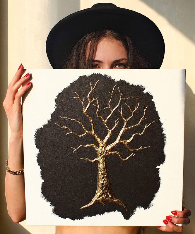 Картина "Дерево життя". Об'ємне дерево фантастично переливається на сонці. Полотно - 40*40 см, структурна паста, акрил, листова золота фарба, захисне покриття.