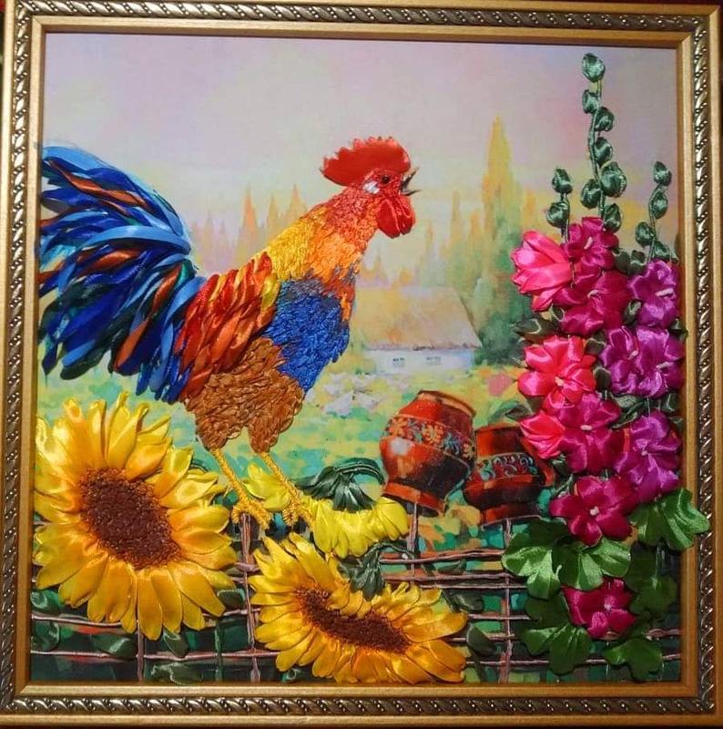 "Доброго ранку Україно" картина, вишита атласними стрічками на якісному принті. Розмір 35 см*35см рамка дерев'яна.