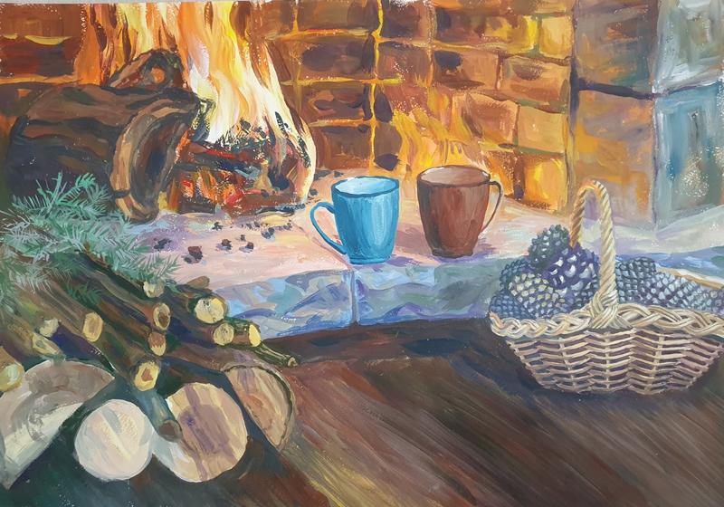 Картина. Папір. Гуаш. А2 В рамі під склом. Розміри з рамкою 594×417 мм