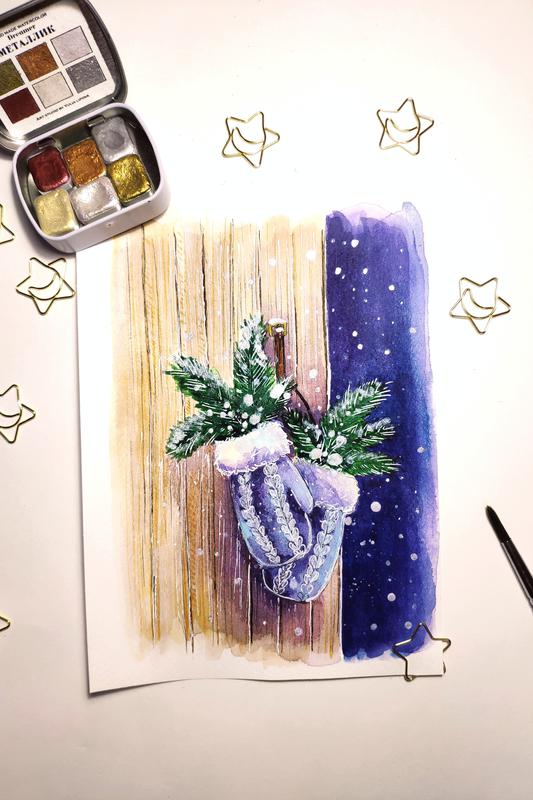 акварельный рисунок на зимнюю тематику. формат А5. замечательный подарок открытка