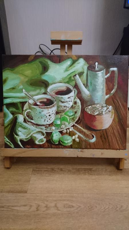 Соковитий натюрморт. Хоча ні, не так, ось так: соковито-свіжо-кавово-макарунно-фісташково-зелений натюрморт!!!))) В кухню буде саме те) Розмір полотна 30*40, олійні фарби
