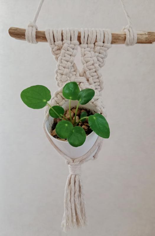 Маленькі кашпо, ручної роботи. З натуральної нитки з люрексом. Прикрасить будь-який інтер'єр. Довжина від палички 28 см, з підвісом 40 см. Можлива продажа з квітами. Паперомія Россо та Пілея пепероміевідна.