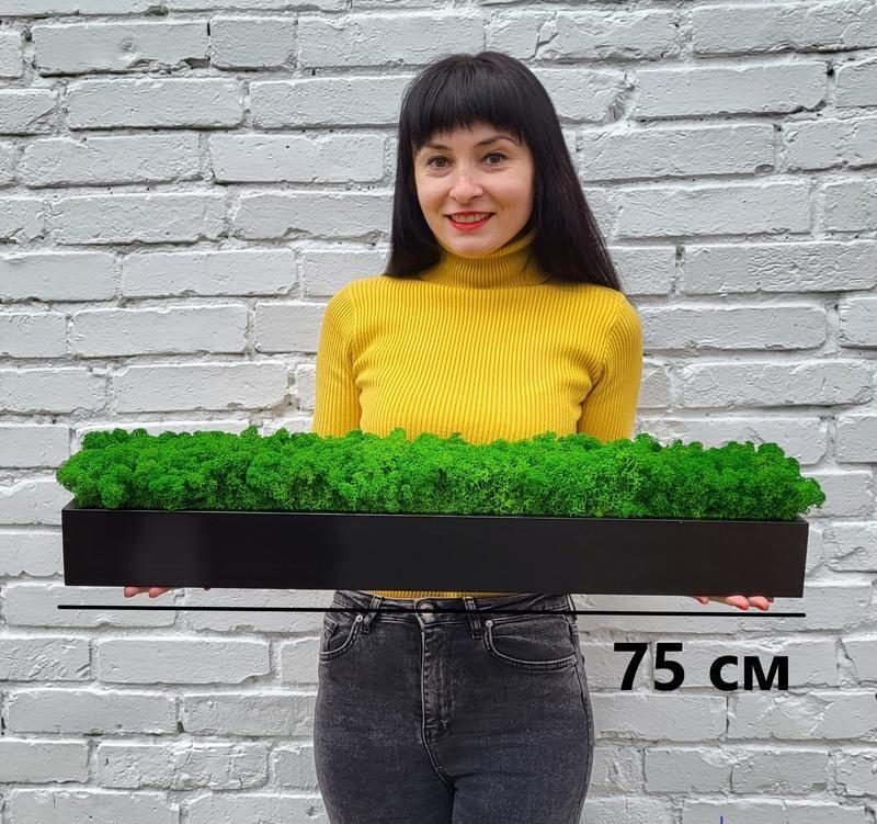Дерев′яне прямокутне кашпо з мохом - декор для Вашого дому та офісу. Нагадаємо, що сам стабілізований мох не втрачає свою м′якість, зовнішній вигляд та колір до 10 років. Не вимагає особливого догляду: не потрібно поливати, виключити попадання прямих сонячних променів. Щодо розмірів кашпо, то пропонуємо такі: 75*15*7 (розмір кашпо без моху) Ціна 2200 грн 75*10*7 Ціна 1780 грн Саме Кашпо можна замовити і в різних кольорах білий, шоколад, чорний, або лише дерево вкрите масловоском Звичайно, залюбки зможемо для ВАс зробити індивідуальні розміри кашпо саме для потреби, а також наповнити його іншими кольорами моху або їх поєднанням - за вибором. Товар виготовляється на замовлення