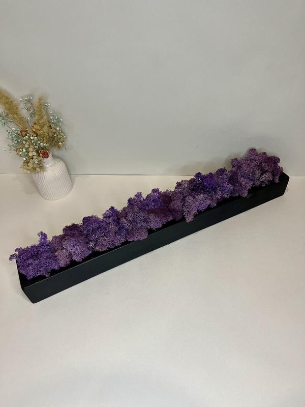Гіпсове прямокутне кашпо зі стабілізованим мохом Black - Purple - стильний елемент декору, який гармонійно впишеться в сучасний інтер'єр. Завдяки мінімалістичній формі та натуральним матеріалам, виріб стане яскравим акцентом у будинку, офісі чи комерційному просторі. Стабілізований мох не потребує догляду: його не потрібно поливати, він зберігає м'якість та насичений зелений колір до 8-10 років. Натуральна фактура гіпсу підкреслює еко-стиль і робить універсальну композицію для різних інтер'єрів - від мінімалізму до лофта. 📏 Розміри кашпо: 500×70×50 мм + мох 🌿 Матеріали: гіпс, стабілізований мох ✨ Особливості: довговічний та екологічний декор; не вимагає світла та поливу; створює затишну атмосферу; ідеальний для прикраси будинку, офісу, кафе чи салону; може стати стильним подарунком. Таке кашпо можна розмістити на полиці, підвіконні, робочому столі або використовувати як настільний центр композиції.