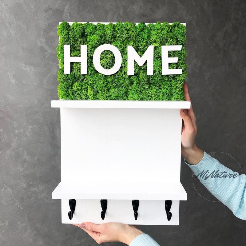 MiNature Moss - студія вертикального озеленення, яка виробляє вироби зі стабілізованого моху та рослин для інтер'єру. Ключниця - це дуже затребуваний товар нашими клієнтами, адже вона не тільки доповнює ваш інтер'єр, але і закриває щиток, і допомагає зберігати ключі в одному місці, дуже зручна річ! Декор зі стабілізованого моху надає свіжості та індивідуальності, який зберігає зовнішній вигляд та природну м'якість до 10 років. Дана модель розміром: довжина 30 див, висота 50 див.
