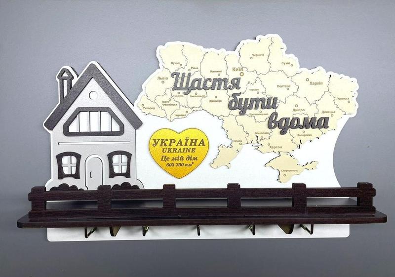 Ключниця на 5 гачків "Щастя бути вдома" Розмір 38х25 см, на задній стінці є петельки для кріплення на стіну Прекрасний подарунок на новосілля, нареченому або для себе