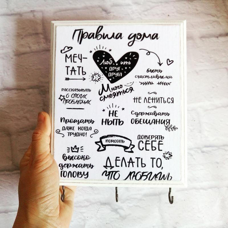 Біла ключниця настінна в передпокій правила будинку табличка панно в передпокій