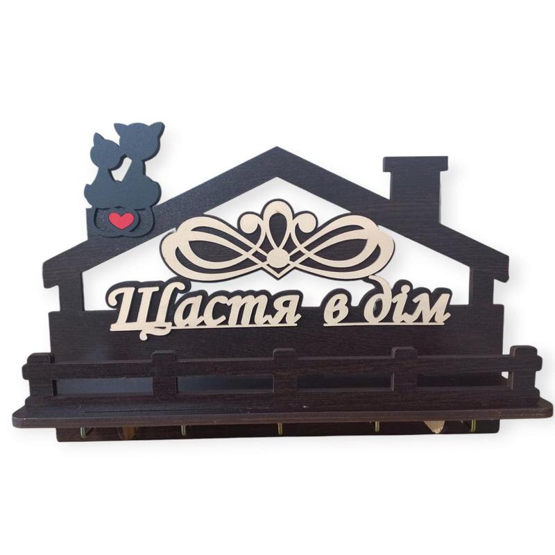 Ключниця "Щастя в дім" на 5 гачків Розмір 32х22 см, на задній стінці є петельки для кріплення на стіну. Прекрасний подарунок на новосілля, нареченому чи собі.