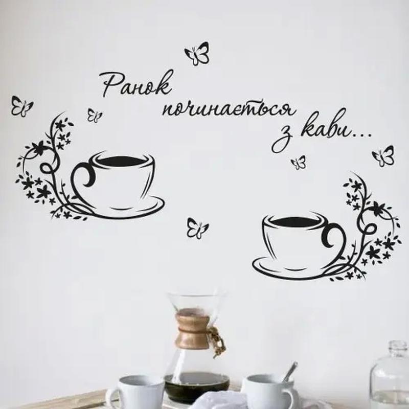 Наклейка "кава. coffee. ранок починається з кави. чашки з кавою" на стіну, скло, меблі, дз...