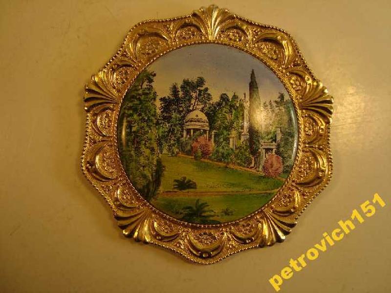 Панно плакетка настенная тарелка пейзаж беседка эмаль ленэмальер ссср