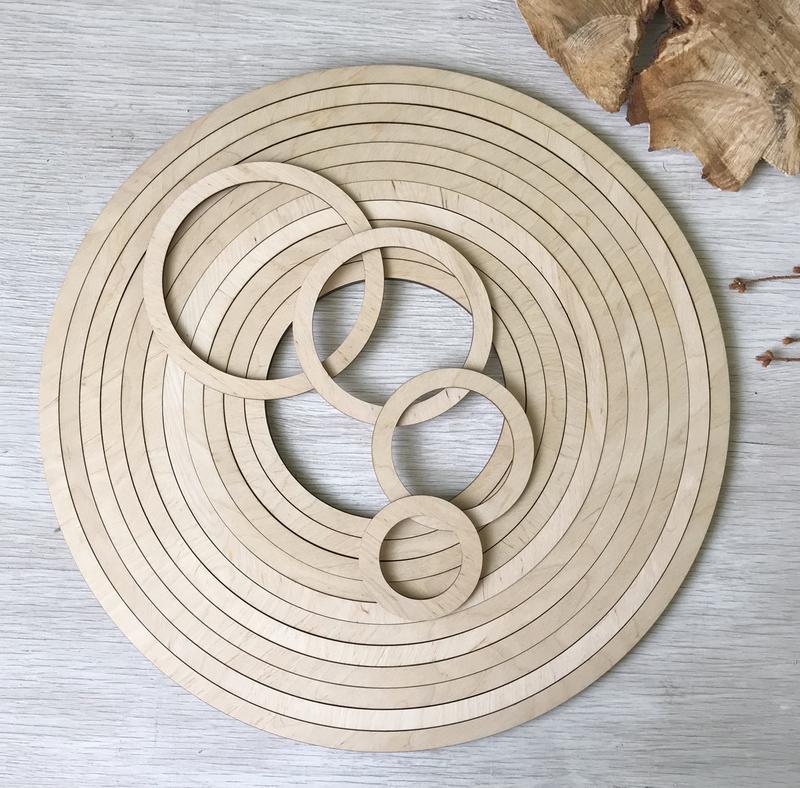 Фанерные кольца -обручи применяются как основа для панно, мобилей, декора. Все заготовки светлого цвета. Можно покрыть кольцо лаком, краской, морилкой для дерева, обмотать тканью, шпагатом, бумагой и т.д.