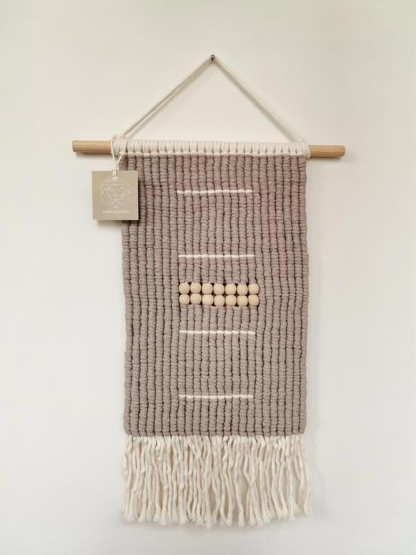 Настінне панно виконано в техніці макраме. Розміри 30 см х 47 див. Виготовлено з натуральних матеріалів - бавовняного шнура, дерев'яної палички і дерев'яних намистин. Відмінно підходить під стиль мінімалізм і вабі-сабі.