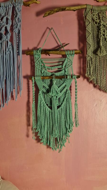 середнього розміру насичене макраме в єдиному екземплярі . всі пано я поету сама з голови. тож унікальність гарантовано . нитка бавовна , дерево яблуня , оброблене і покрите .