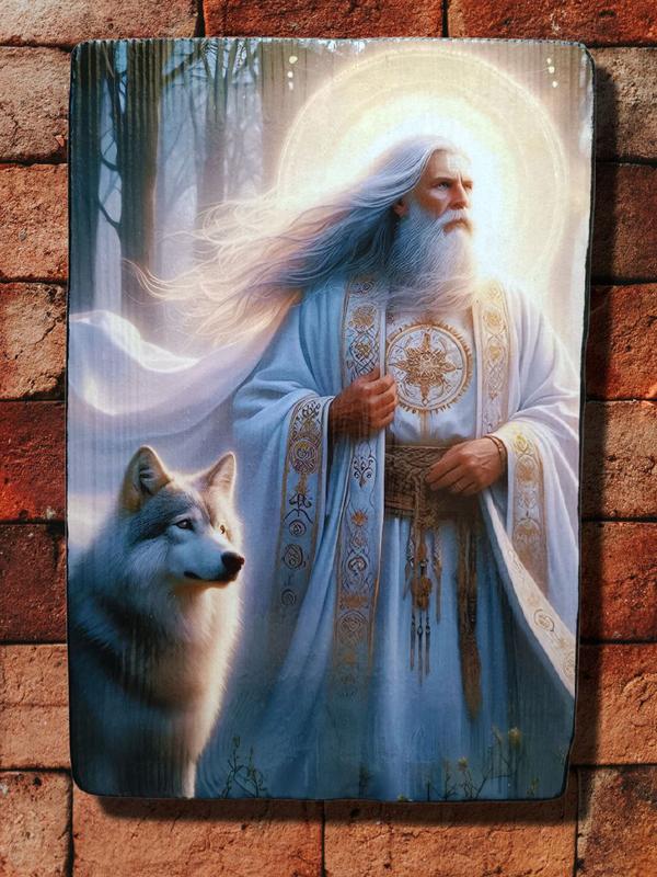 Унікальне дерев’яне панно, на якому зображено Білобога — уособлення добра, сонця та гармонії у слов’янській традиції. Білобог постає у світлому вбранні, з посохом у руці, поруч з ним — ніжне оленятко, символ чистоти, лісової сили й душевної рівноваги. Образ створений у світлих, теплих тонах, що наповнюють простір світлом і спокоєм. Основа — натуральна сосна, вручну випалена та захищена екологічним маслом. Панно легко розмістити на стіні завдяки зручному підвісу. Прекрасно пасує до інтер’єру з природним або духовним настроєм, для дому, майстерні чи святилища. Розмір: 20×28 см, товщина 3 см.