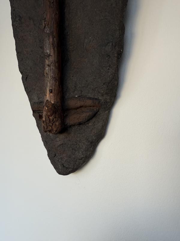Маска панно,виготовлена в техніці папʼє-маше з додаванням гілки сосни