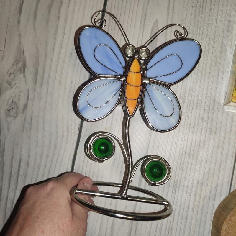 Підвiчник метелик висота 19 см, ширина крил 13 см.метал і як кольоровий акрил.стани нормальне.під свічку таблетку.всередині де ставити свічку трохи жовтизни. дивіться інші Мої оголошення