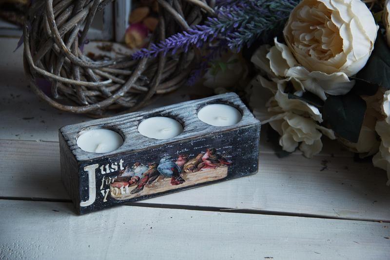 Затишний і теплий свічник в стилі рустик на три змінних свічки. Дерево-сосна. В наявності.