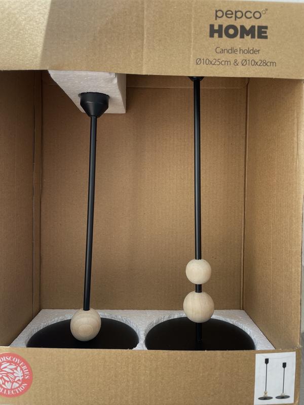 Набір свічників металевих чорних, 10х25 та 10х28 см Pepco Мають дерев’яні круглі елементи Гарно та стильно виглядають , чудовий подарунок до свят