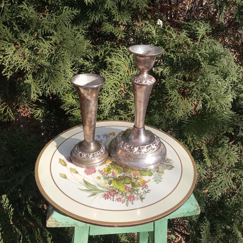 Подсвечник и ваза в одном стиле.посеребрение.клеймо