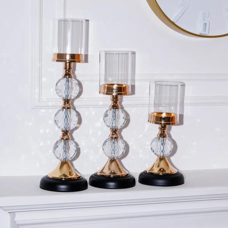 Три вишукані свічники, виготовлені з високоякісного металу та прикрашені кристалами. Їх елегантний дизайн та розкішний декор роблять їх чудовим доповненням до будь-якого інтер'єру. Свічники мають класичну форму з округлою основою, що плавно переходить у довгу, витончену шийку. Їх поверхня вкрита блискучою позолотою, яка підкреслює елегантність та вишуканість виробів. Особливої краси свічникам додають численні кришталеві підвіски, що сяють на світлі, створюючи атмосферу розкоші та романтики. Свічники чудово підійдуть для святкового столу, урочистої події або просто для створення затишної атмосфери вдома. Їх можна використовувати як з декоративними свічками, так і з функціональними, щоб освітити кімнату та створити приємне освітлення. Додаткова інформація: Свічники виготовлені з високоякісних матеріалів, що гарантує їх довговічність та стійкість до пошкоджень. Їх можна легко чистити м'якою сухою ганчіркою. Свічники стануть чудовим подарунком для будь-якої людини, яка цінує красу та естетику.